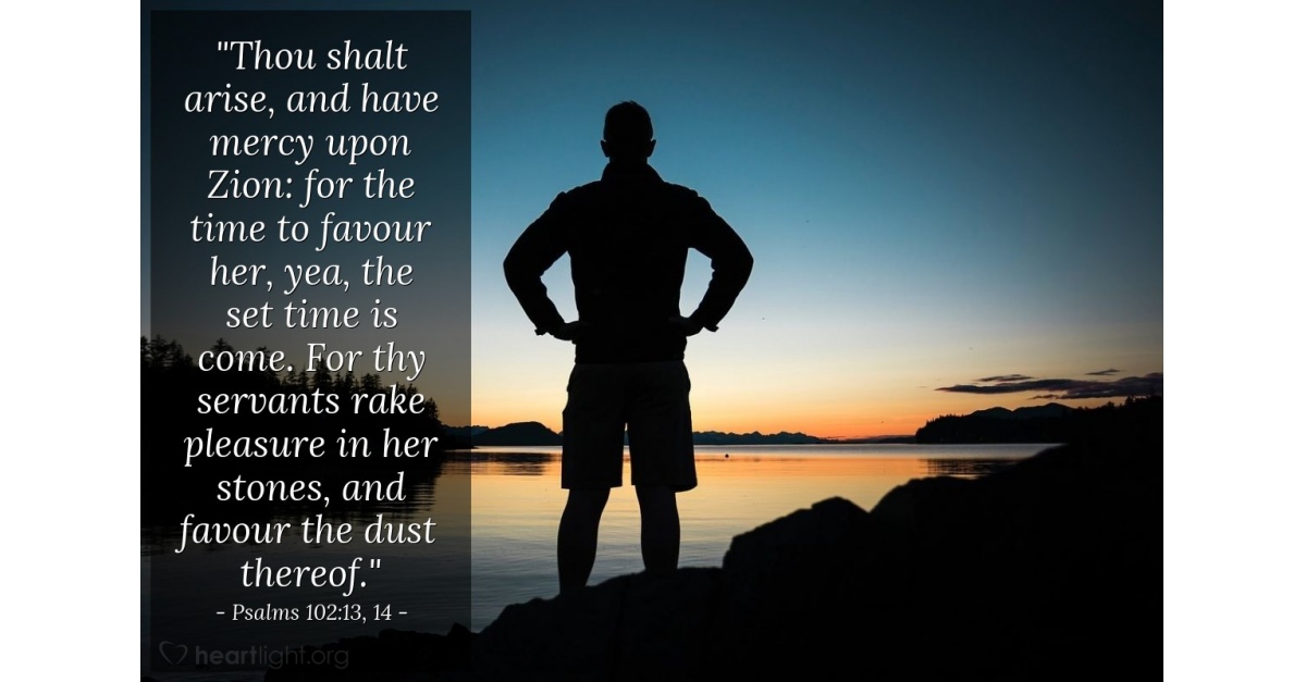 Thou shalt arise, and have mercy upon Zion: for the time to favor her, yea, the set time, is come. For thy servants take pleasure in her stones, and favor the dust thereof. (Psalm 102:13-14)